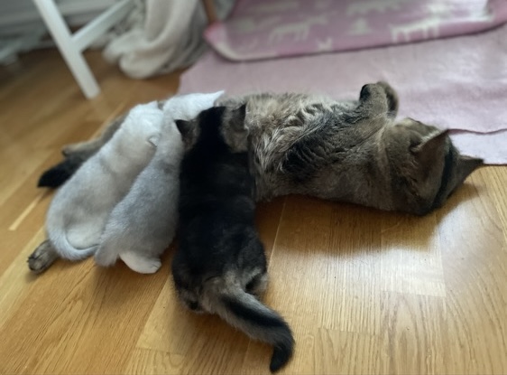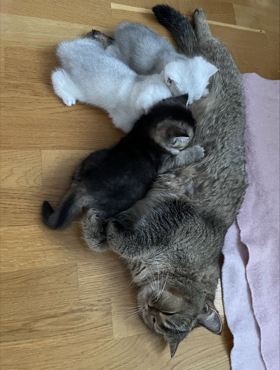 Solskenshistorian är denna helt ljuvliga lilla kattfamiljen på bilderna ovan. Matte kom till oss med förtvivlan då mammakatt fått problem med ett juver efter att bebisarna börjat äta lite riktig mat o därför diat mindre. Då vi hade personal på plats med lång erfarenhet som kattuppfödare så kunde teknik i juvermassage förevisas. Matte gjorde ett fantastiskt jobb med det krånglande juvret och idag kunde vi konstatera, efter kontakt med djurägaren, att allt nu återgått till det normala och att juvret återgått till att vara bebisarnas favvo-juver😘